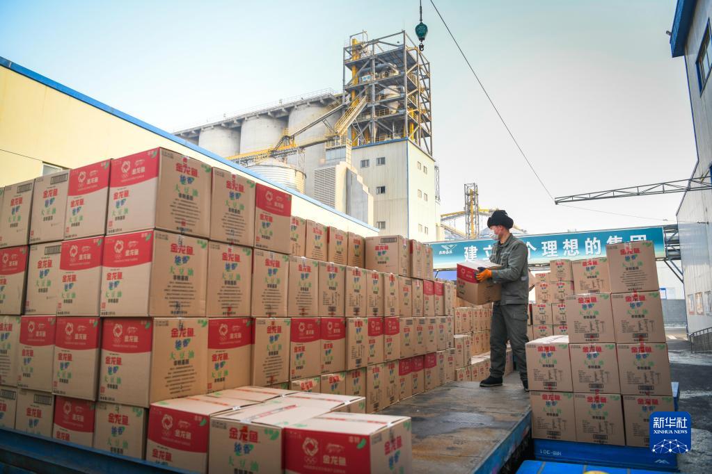 2020年2月20日,在益海嘉里(哈爾濱)糧油食品工業(yè)有限公司園區,工人在搬運產(chǎn)品。新華社記者 王松 攝