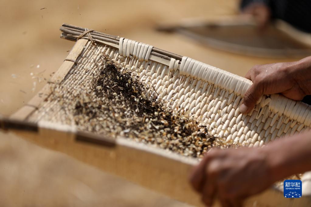 6月2日,在山東省臨沂市郯城縣郯城街道,裁判組工作人員揚去雜質(zhì)提取麥粒,測算減損率。新華社發(fā)(張春雷攝)