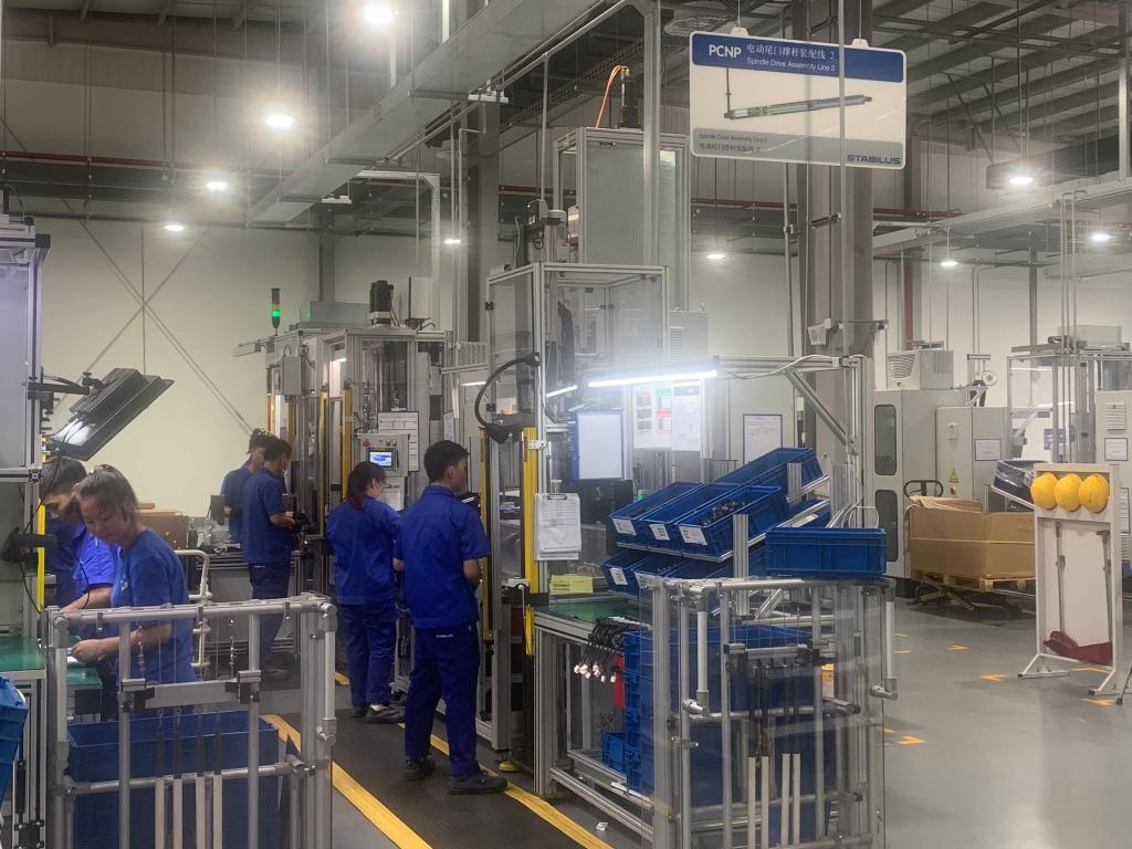 德國斯泰必魯斯(浙江)有限公司工廠(chǎng),汽車(chē)電動(dòng)尾門(mén)撐桿組裝線(xiàn)正在作業(yè)。(新華社記者 于佳欣 攝)