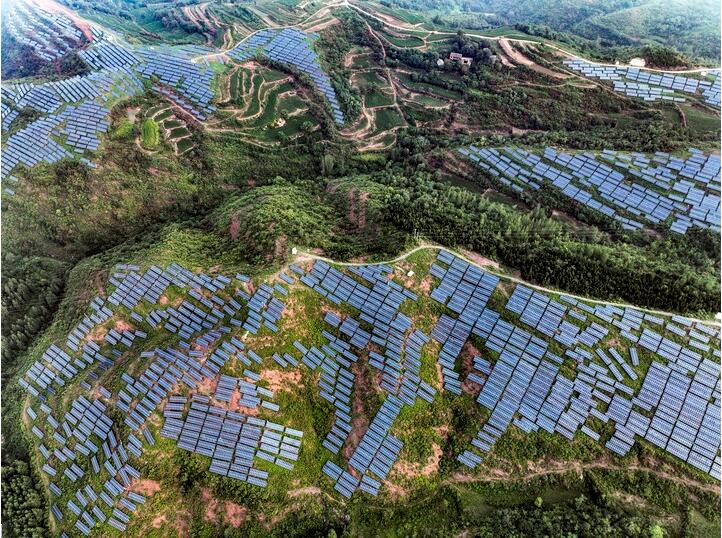 這是8月4日在河南省濟源市大峪鎮拍攝的一處光伏電站(無(wú)人機照片)。新華社發(fā)(苗秋鬧攝)