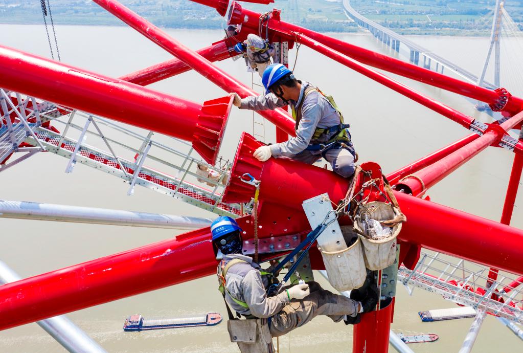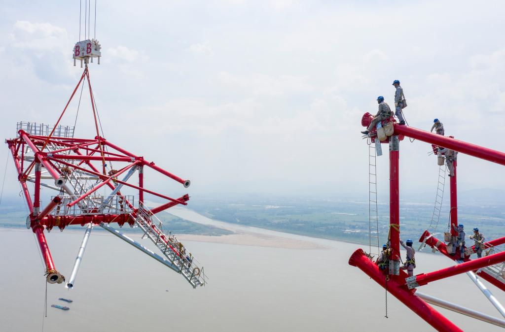 全球連線(xiàn)|“西電東送”重點(diǎn)工程安徽段長(cháng)江跨越塔全部組立完成
