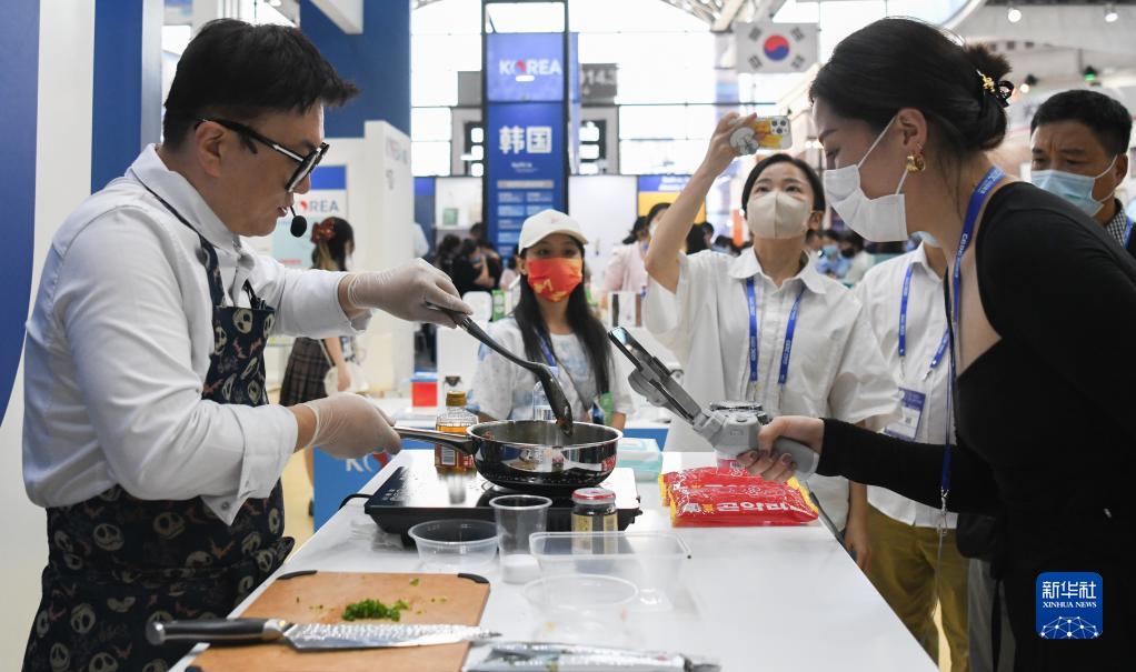 9月16日,廚師在東博會(huì )韓國館展示廚藝。新華社記者 張愛(ài)林 攝