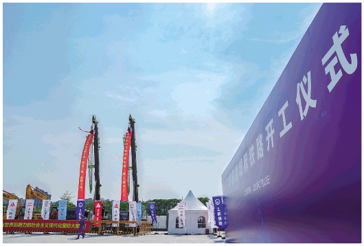 7月13日拍攝的滬蘇嘉城際鐵路在上海青浦的開(kāi)工儀式現場(chǎng)。 記者丁汀攝