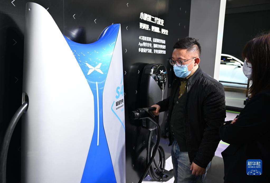 在第二十屆廣州車(chē)展的小鵬汽車(chē)展臺,參觀(guān)者體驗S4超快充樁(2022年12月30日攝)。新華社記者 鄧華 攝