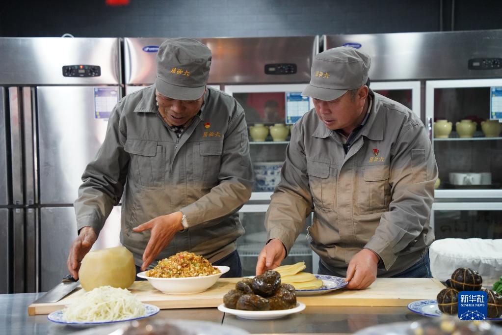 1月31日,醬菜師傅在北京六必居加工車(chē)間演示醬菜制作技藝。 新華社記者 魏弘毅 攝