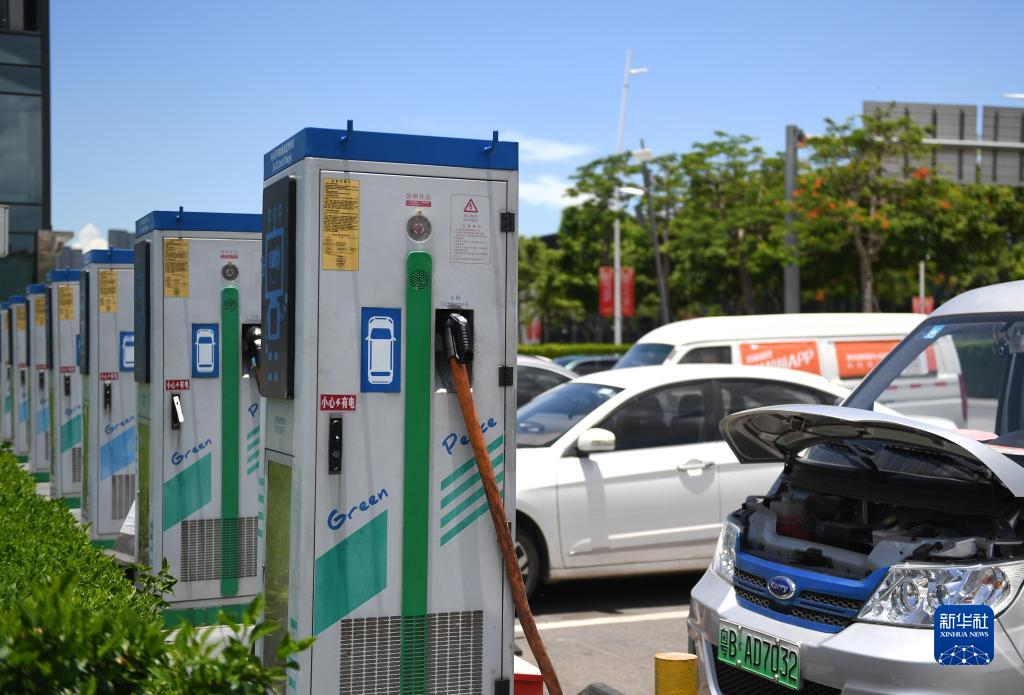 新能源汽車(chē)在深圳前海一處停車(chē)場(chǎng)充電(2021年7月15日攝)。新華社記者 毛思倩 攝