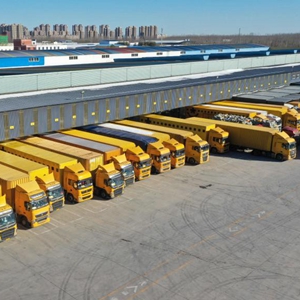 大型快遞運輸車(chē)輛??吭陧嵾_華北分撥中心(無(wú)人機照片)。(受訪(fǎng)者供圖)
