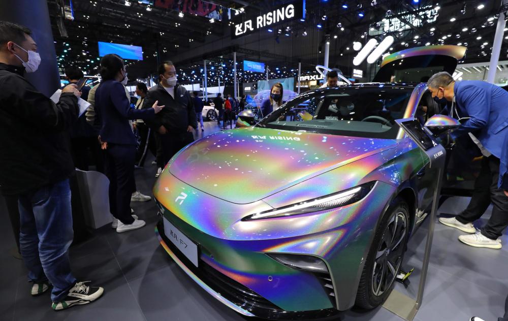 4月24日,參觀(guān)者在2023第二十屆上海國際汽車(chē)工業(yè)展覽會(huì )飛凡F7展車(chē)邊駐足觀(guān)看。新華社記者 方喆 攝