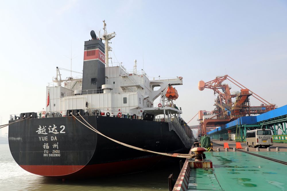 船舶??吭趪茳S驊港四期碼頭進(jìn)行裝船作業(yè)(2023年3月9日攝)。新華社記者 駱學(xué)峰 攝