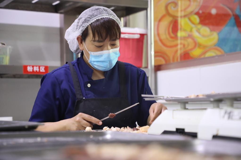 在齊齊哈爾市一家烤肉店,廚師正在為顧客制作烤肉。新華社記者唐鐵富 攝