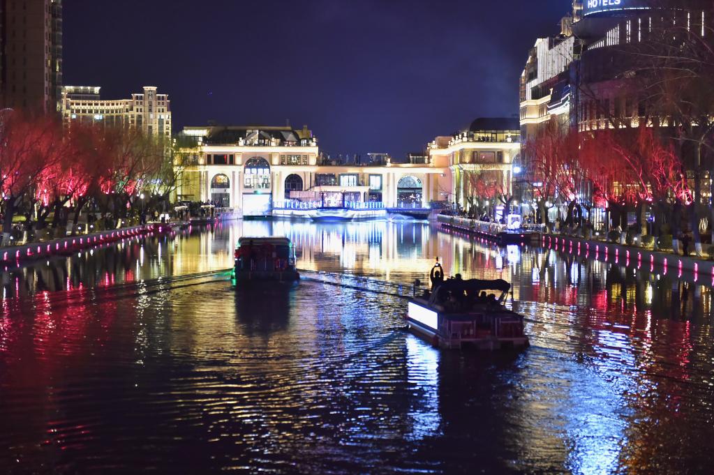 游船行駛在亮馬河上。(新華社記者陳鐘昊 攝)