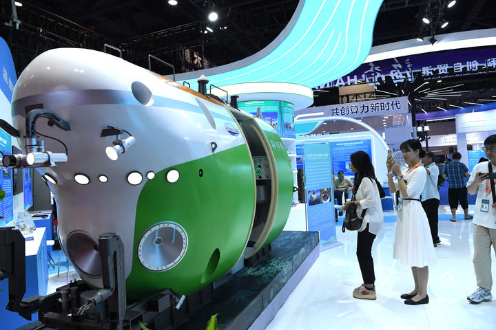 9月19日,觀(guān)眾在東博會(huì )上了解“奮斗者”號全海深載人潛水器模型。新華社記者 周華 攝