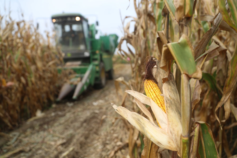 在遼寧省鐵嶺縣蔡牛鎮玉米田里,農民駕駛農機收割玉米(2023年9月26日攝)。新華社記者 楊青 攝