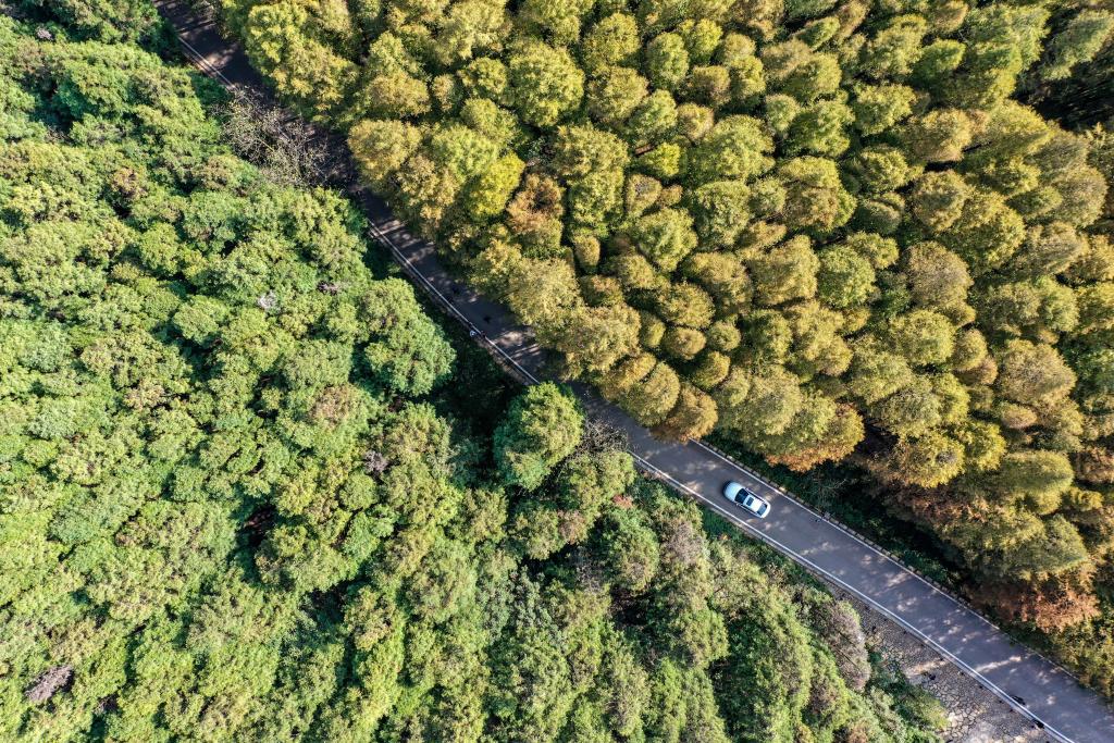 這是11月7日拍攝的“178環(huán)線(xiàn)”景色,一輛小汽車(chē)行駛在“178環(huán)線(xiàn)”上(無(wú)人機照片)。新華社記者唐奕 攝