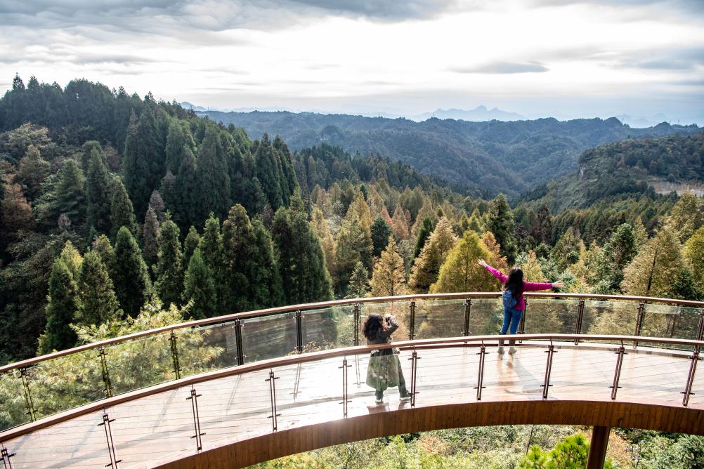 11月7日,游客在“178環(huán)線(xiàn)”上的著(zhù)名景點(diǎn)山王坪內參觀(guān)游覽。新華社記者唐奕 攝