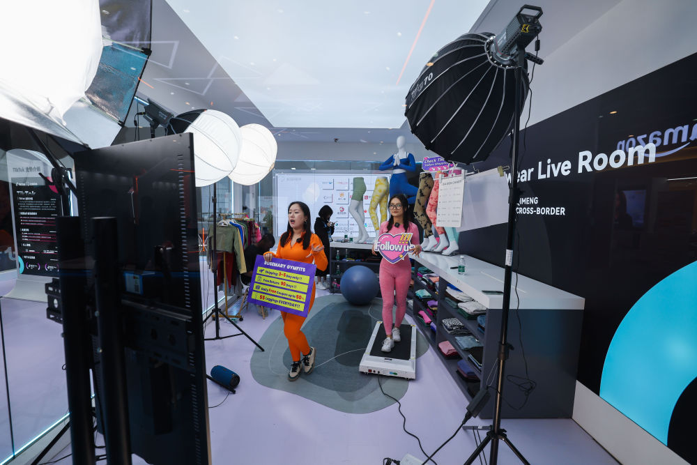 2023年11月23日,在浙江杭州舉行的第二屆全球數字貿易博覽會(huì )絲路電商館,跨境電商進(jìn)行直播銷(xiāo)售。新華社記者 徐昱 攝