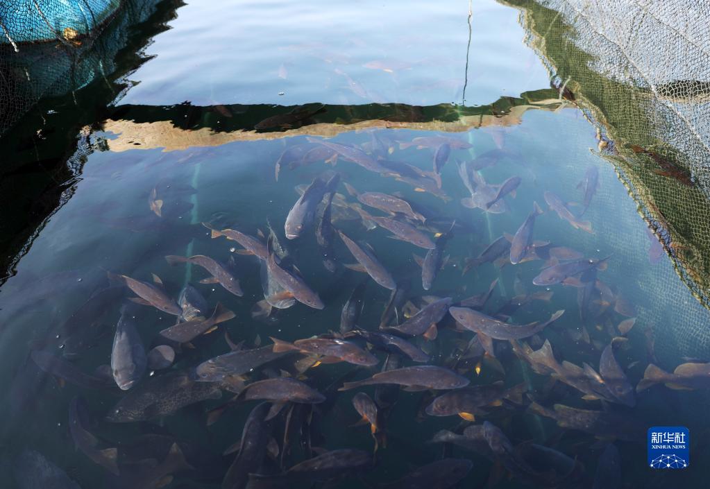 網(wǎng)箱中養殖的魚(yú)(1月27日攝)。新華社記者 李鋼 攝