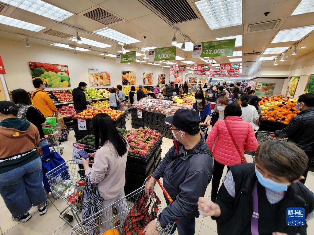 3月1日,市民在香港紅磡一家超市排隊結賬。新華社記者 王申 攝