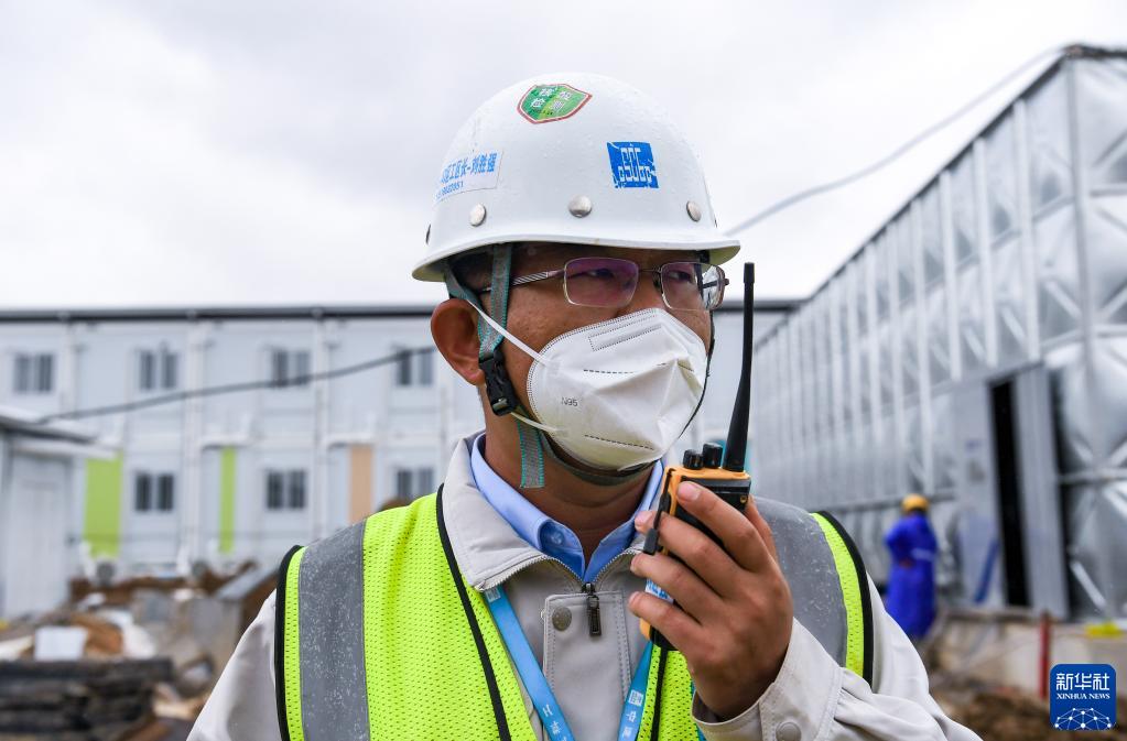 4月2日,一期醫院A3工區長(cháng)劉勝強在施工現場(chǎng)。新華社記者 梁旭 攝