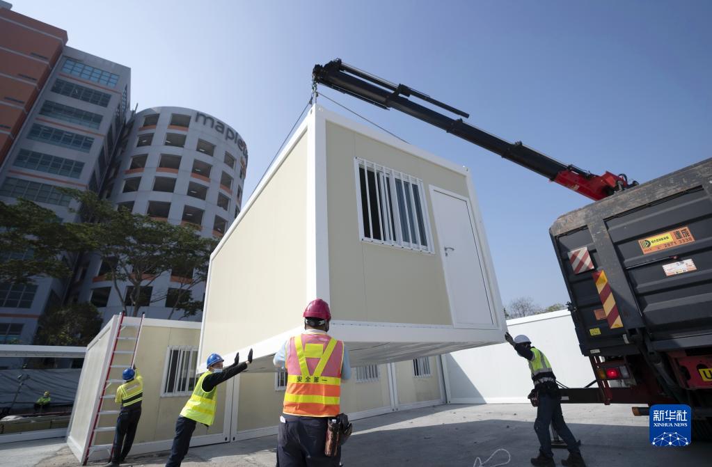 2月26日,工作人員在青衣社區隔離設施項目建設現場(chǎng)施工。新華社記者 呂小煒 攝