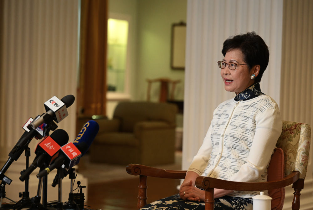 香港特區行政長(cháng)官林鄭月娥在禮賓府接受記者采訪(fǎng)。新華社記者 金良快 攝