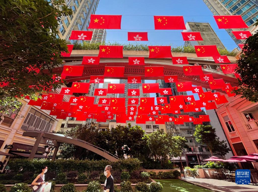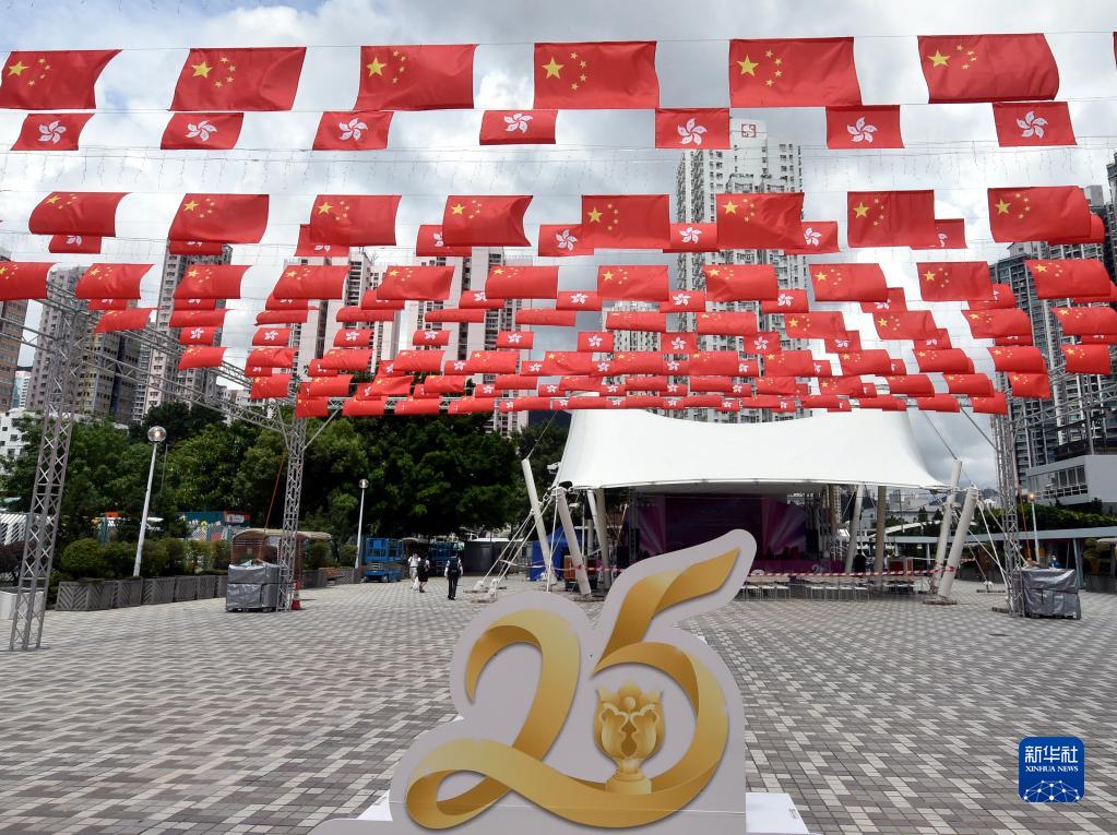 6月28日在香港街頭拍攝的慶祝香港回歸祖國25周年街景。新華社記者 李鋼 攝