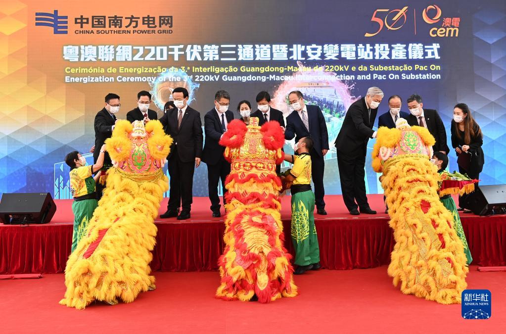11月25日拍攝的粵澳聯(lián)網(wǎng)220千伏第三通道正式投產(chǎn)儀式現場(chǎng)。 新華社發(fā)(賴(lài)增鵬 攝)