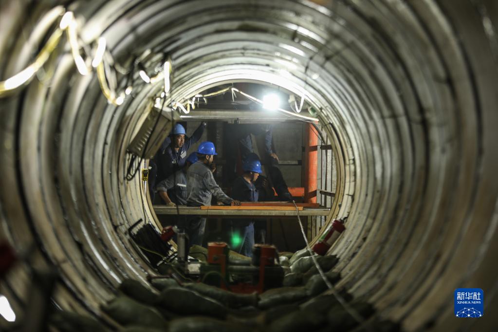 南方電網(wǎng)公司項目人員在工作井內進(jìn)行施工作業(yè)前的準備(2018年8月27日攝)。 新華社發(fā)(陳海東 攝)