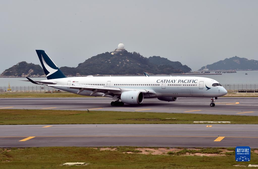 11月25日,一架客機降落香港國際機場(chǎng)第三跑道。新華社記者 盧炳輝 攝