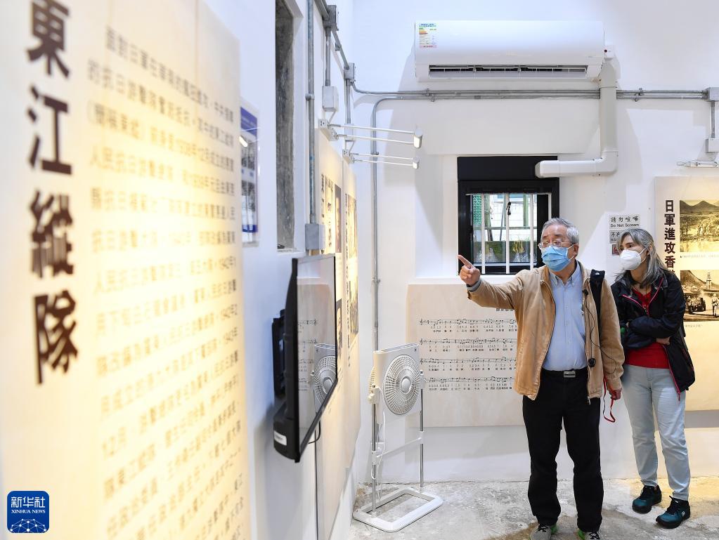 11月26日,香港嶺南大學(xué)高級研究員、香港地方志中心事務(wù)顧問(wèn)劉蜀永(左)在香港沙頭角抗戰紀念館講解。新華社記者 陳鐸 攝
