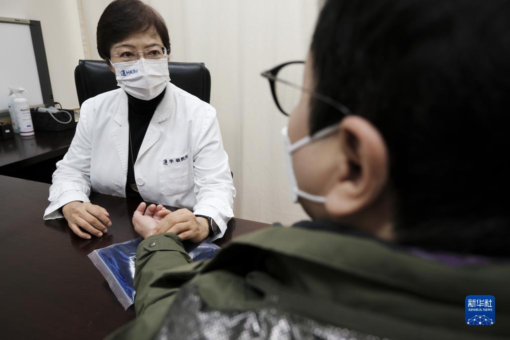 12月13日,在香港浸會(huì )大學(xué)陳漢賢伉儷中醫專(zhuān)科診所暨臨床規范研究中心,中醫藥學(xué)院副院長(cháng)李敏(左)在為病患把脈。新華社記者 王申 攝
