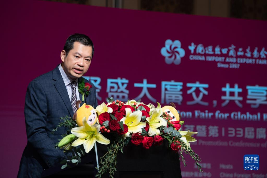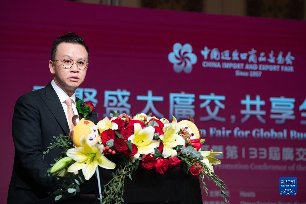 3月23日,廣交會(huì )副主任兼秘書(shū)長(cháng)、中國對外貿易中心主任儲士家在活動(dòng)上致辭。新華社記者 張金加 攝