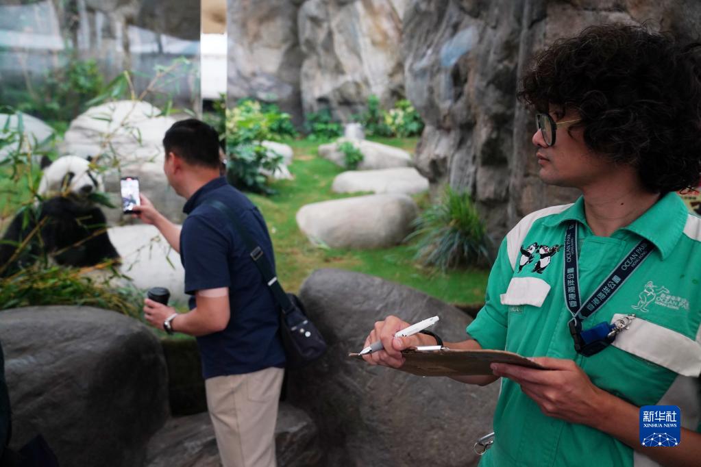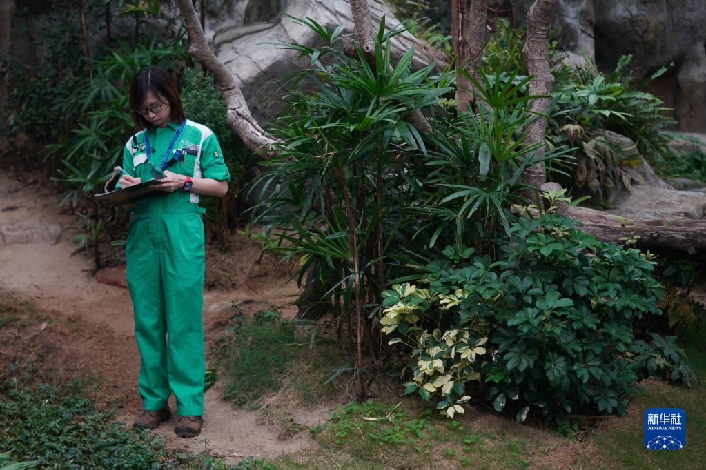 看著(zhù)近距離互動(dòng)的“盈盈”,“奶爸”梁家綸趕緊用手機相機捕捉一些特寫(xiě)畫(huà)面。這名留著(zhù)“爆炸頭”的護理員,還會(huì )為公園的媒體賬號提供內容。