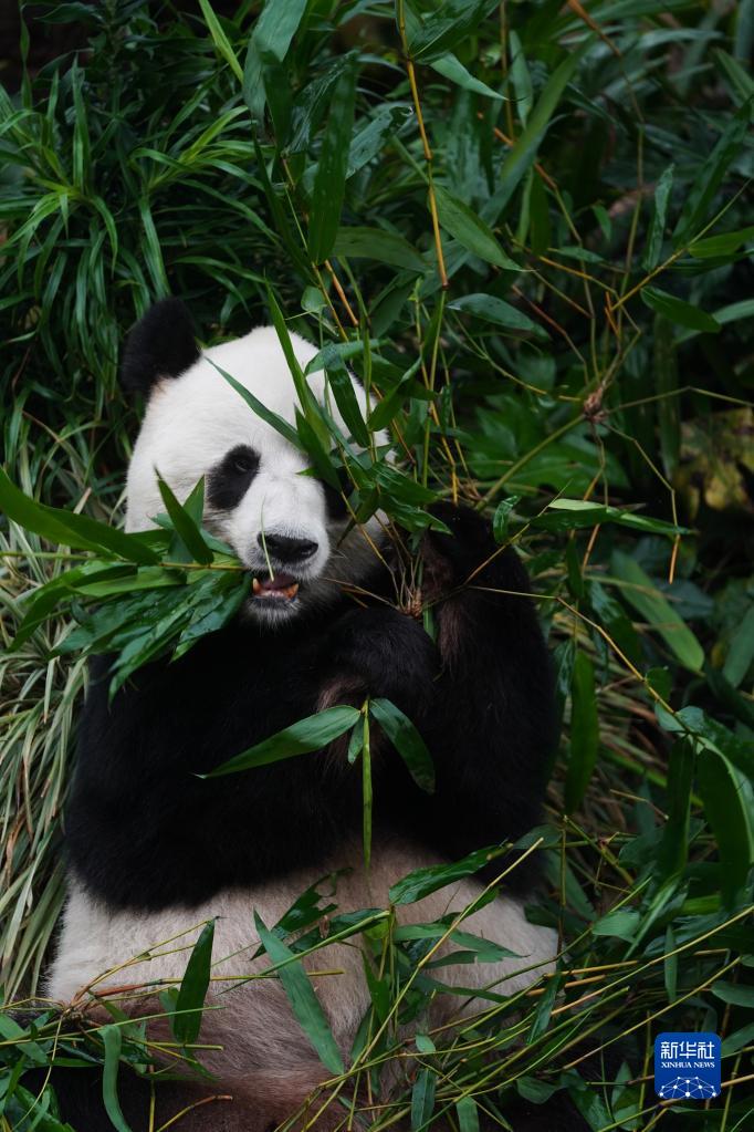在香港海洋公園,大熊貓“樂(lè )樂(lè )”在吃早餐(4月19日攝)。新華社記者 王申 攝
