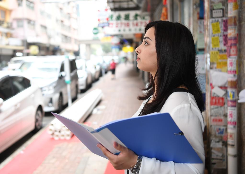 希娜在香港街頭工作(4月20日攝)。新華社記者 陳鐸 攝