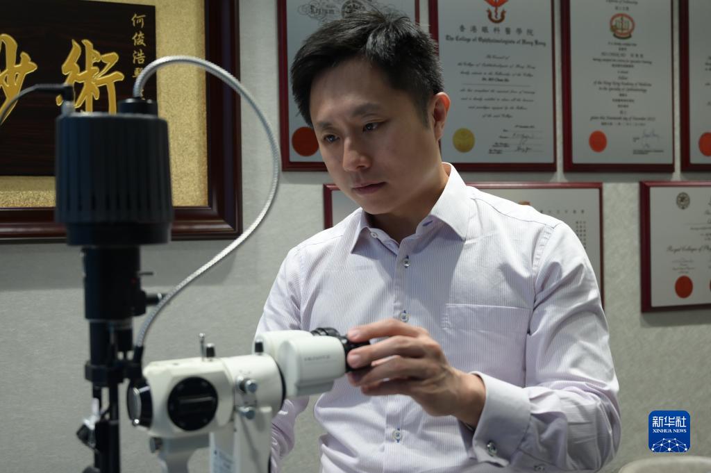 香港眼科醫生何俊浩在整理儀器(8月2日攝)。新華社記者 譚佳銘 攝