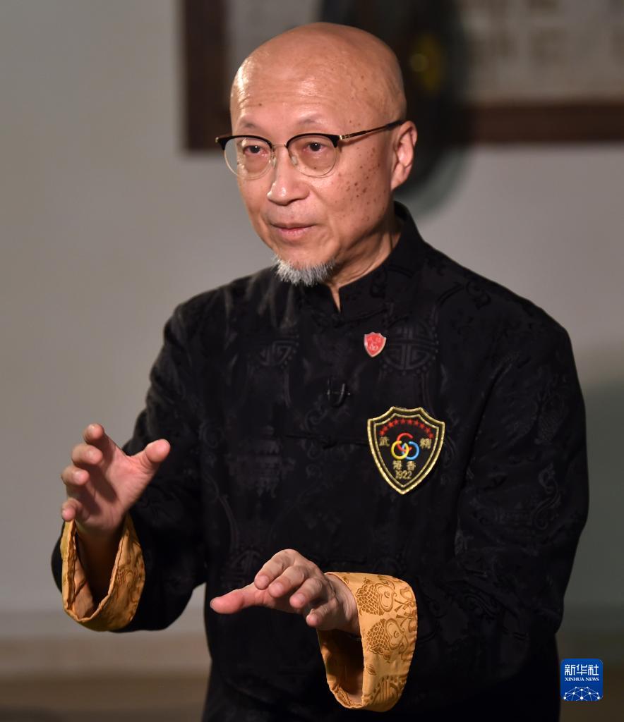 香港精武體育會(huì )主席柯俊龍接受采訪(fǎng)(8月18日攝)。新華社記者 盧炳輝 攝