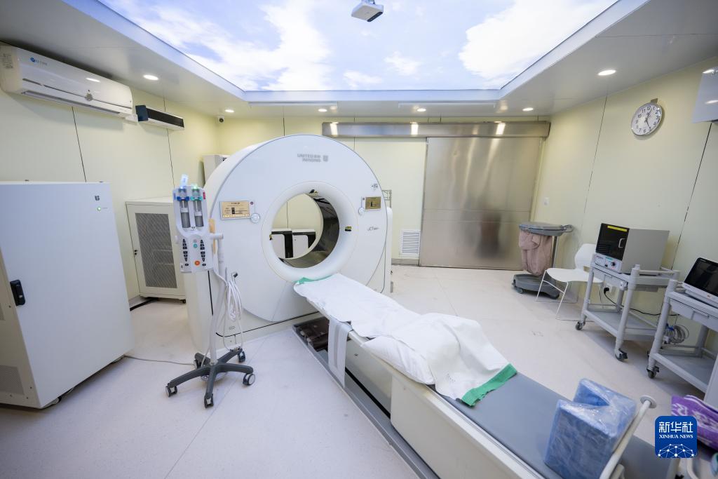 檢查室里設有先進(jìn)儀器,房間天花板的設計也別具心思:藍天白云的圖案,令病人躺下做檢查時(shí)猶如仰望晴空,有助于放松心情。