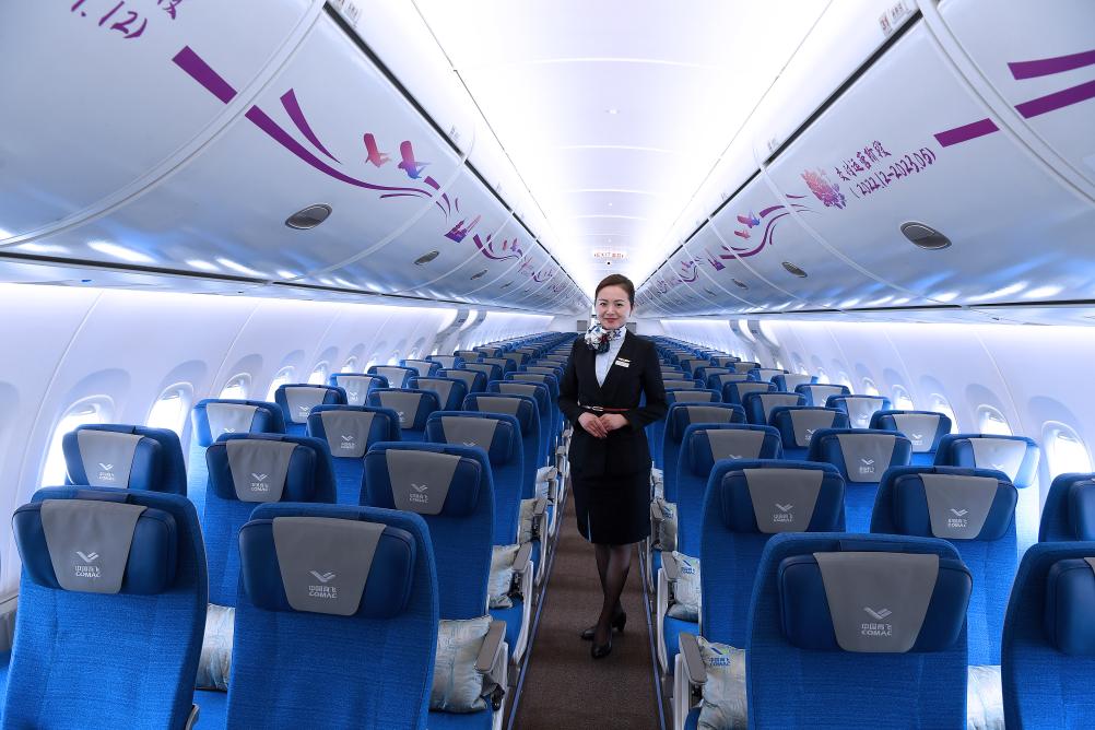 這是12月13日拍攝的C919飛機經(jīng)濟艙。新華社記者 陳鐸 攝