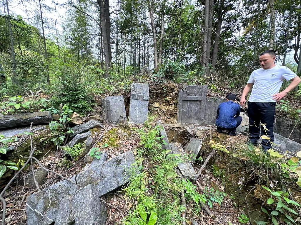 漓江源頭附近被盜掘破壞的清代古墓(2023年5月14日攝)。新華社記者翟翔 攝