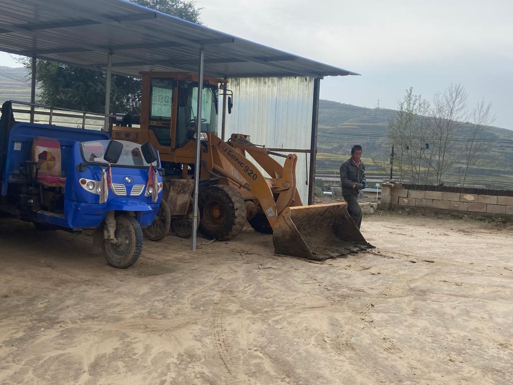 村民馬繼國將清理牛糞的推土機停放在自家農機工棚里。新華社記者王朋 攝