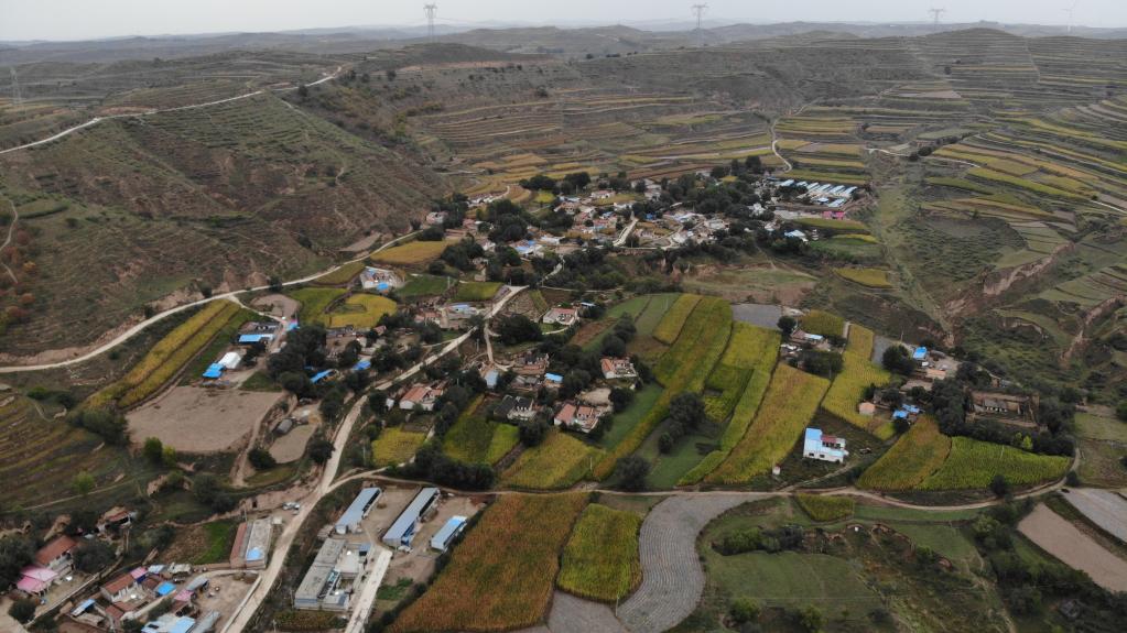 這是2021年9月26日拍攝的甘肅省定西市安定區李家堡鎮窯坡村(無(wú)人機照片)。新華社記者王朋 攝