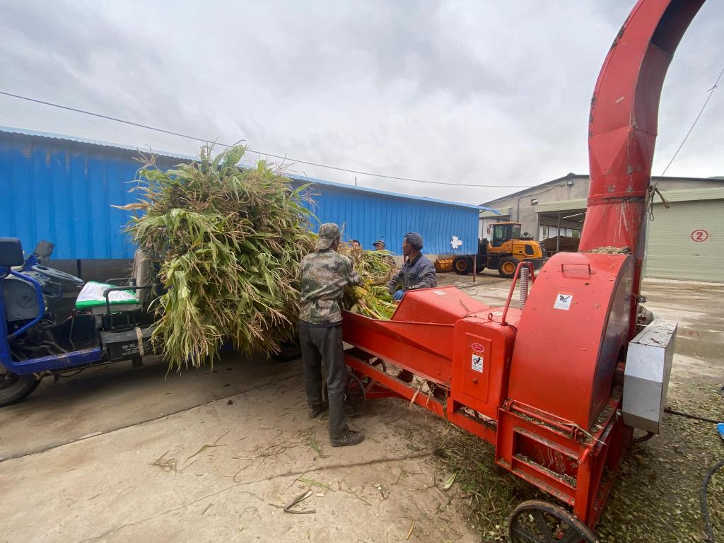 村民在窯坡村億邦農牧農民專(zhuān)業(yè)合作社加工飼草。新華社記者王朋 攝