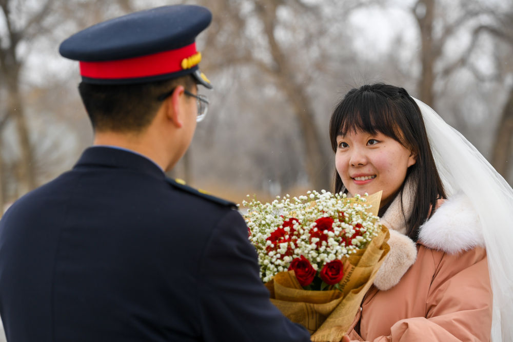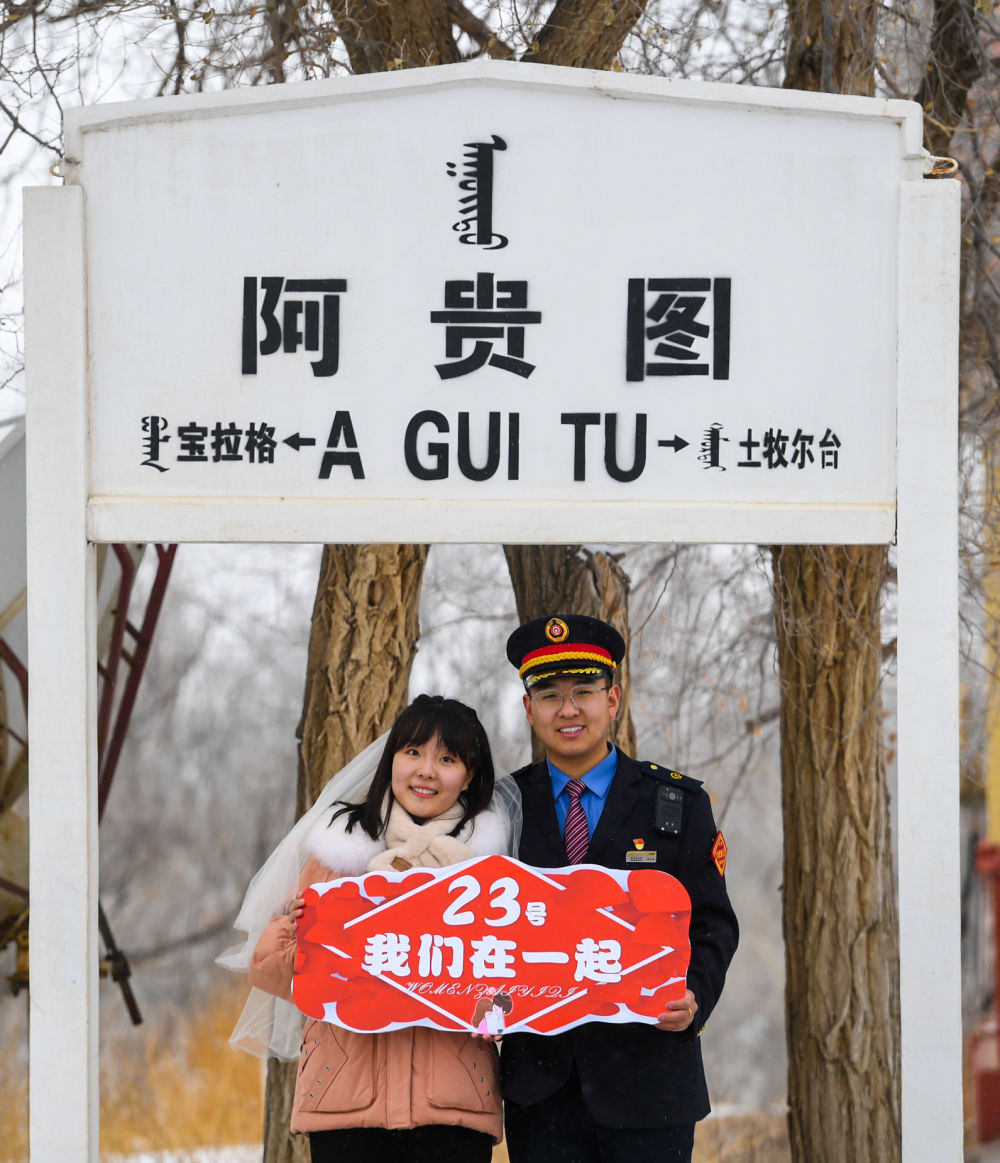 裴召勇的未婚妻張芳是包頭貨運中心大牛地車(chē)間的貨運員,兩人工作地點(diǎn)相距約600公里,平時(shí)聚少離多?!?3日”對裴召勇和張芳來(lái)說(shuō),意義非同一般。他倆的生日都是在23日,相識也是23日,原本計劃在2021年10月23日舉辦婚禮,但由于疫情和工作原因,他們的婚禮無(wú)奈推遲。今年春節裴召勇和張芳都要值班。為了能和裴召勇有一次短暫的相聚,倒休的張芳決定1月23日前往阿貴圖站為裴召勇送去溫暖和愛(ài)意。