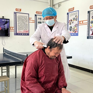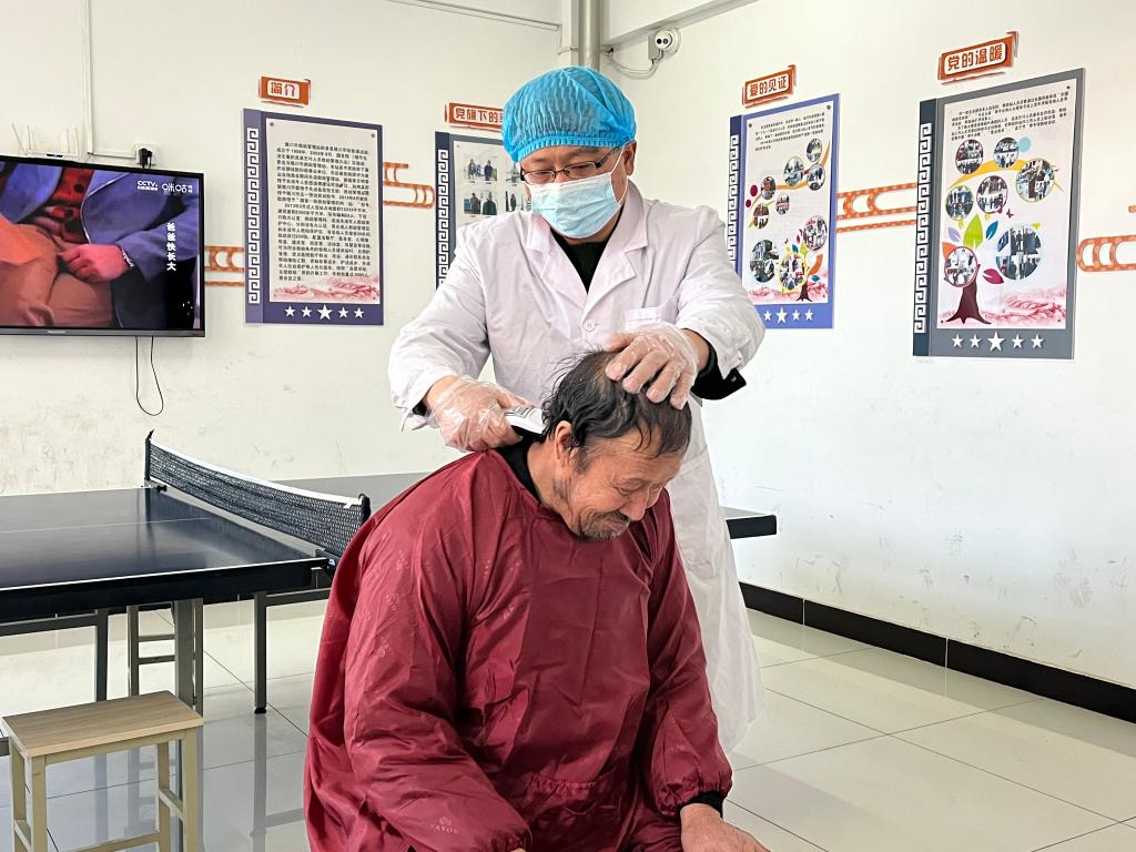 春節前,銀川市救助管理站的工作人員幫劉銀漢理發(fā)。(受訪(fǎng)者供圖)