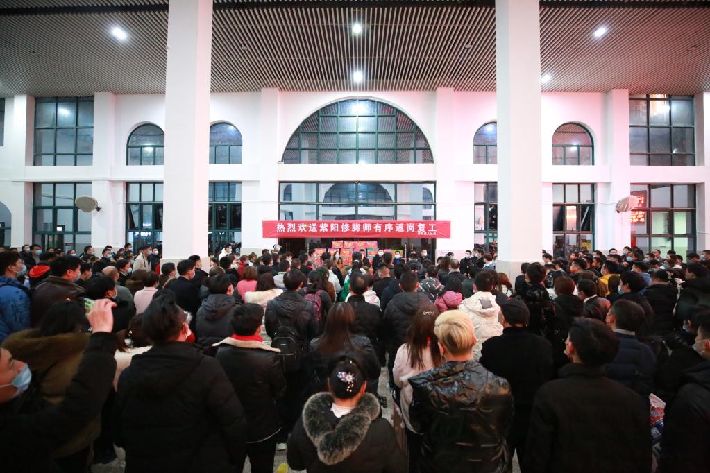 紫陽(yáng)火車(chē)站開(kāi)行務(wù)工專(zhuān)列送老鄉們返崗。(受訪(fǎng)者供圖)