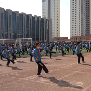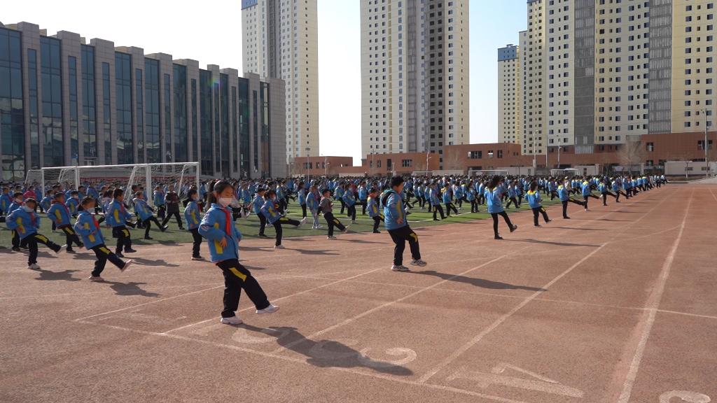 22日,蘭州新區第二小學(xué)學(xué)生們在操場(chǎng)上做課間操。(新華社記者王紫軒 攝)