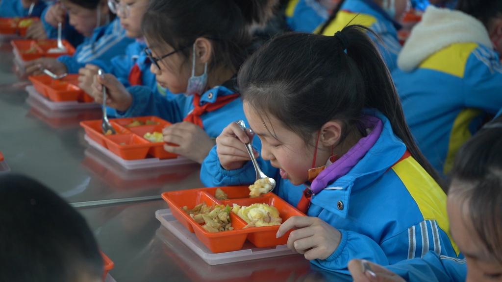 22日,尚欣怡和同學(xué)們在食堂吃午飯。(新華社記者王紫軒 攝)