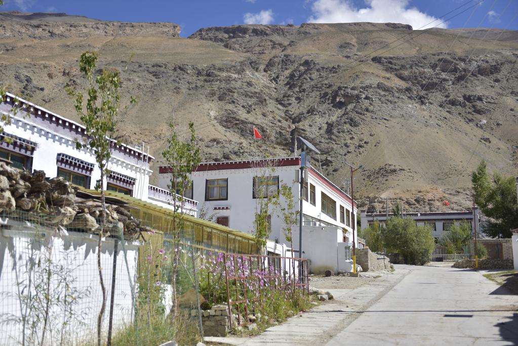 走在村里整潔的街道上,路旁一棟棟白色的藏式小院鱗次櫛比,坐在門(mén)前享受冬日暖陽(yáng)的老人們臉上滿(mǎn)是笑意?!按罅ν七M(jìn)環(huán)境整治,村里安排3名村民負責公共衛生?!睔W珠說(shuō)。