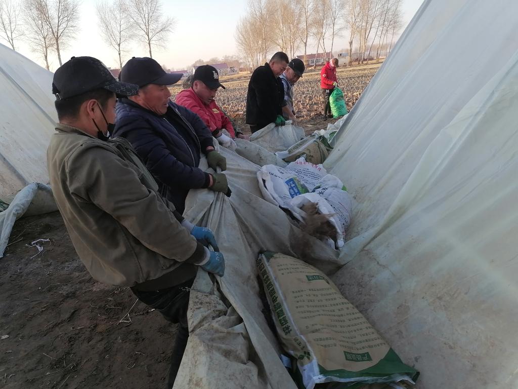 黑龍江省齊齊哈爾市泰來(lái)縣平洋鎮戰斗村農戶(hù)正在修繕育秧大棚。(受訪(fǎng)者供圖)
